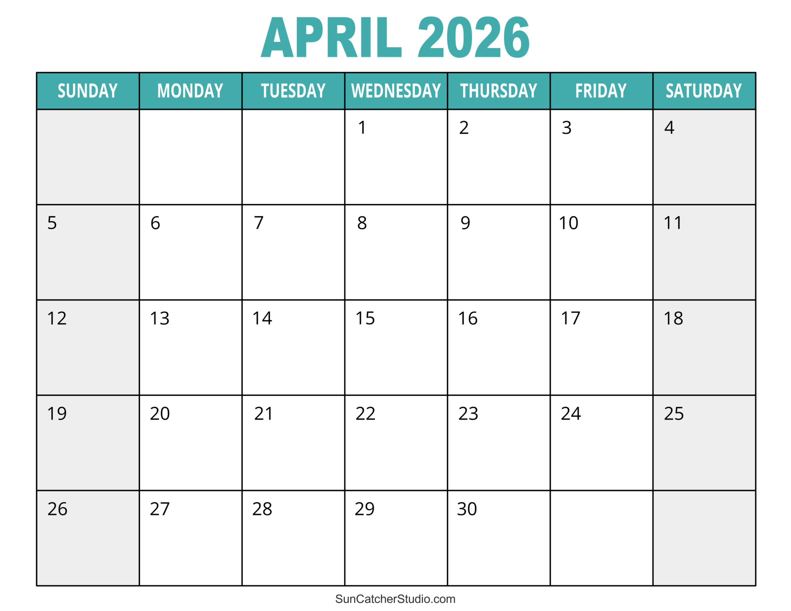 April 2026 Calendar Free Printable Free Printables Lettering SVG Files Tools Apps